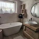 Villa Rosi, 4 Camere Da Letto E 3 Bagniはウォ-クインシャワ-,個別のトイレ とバスタブがある3室のバスル-ムを提供します.